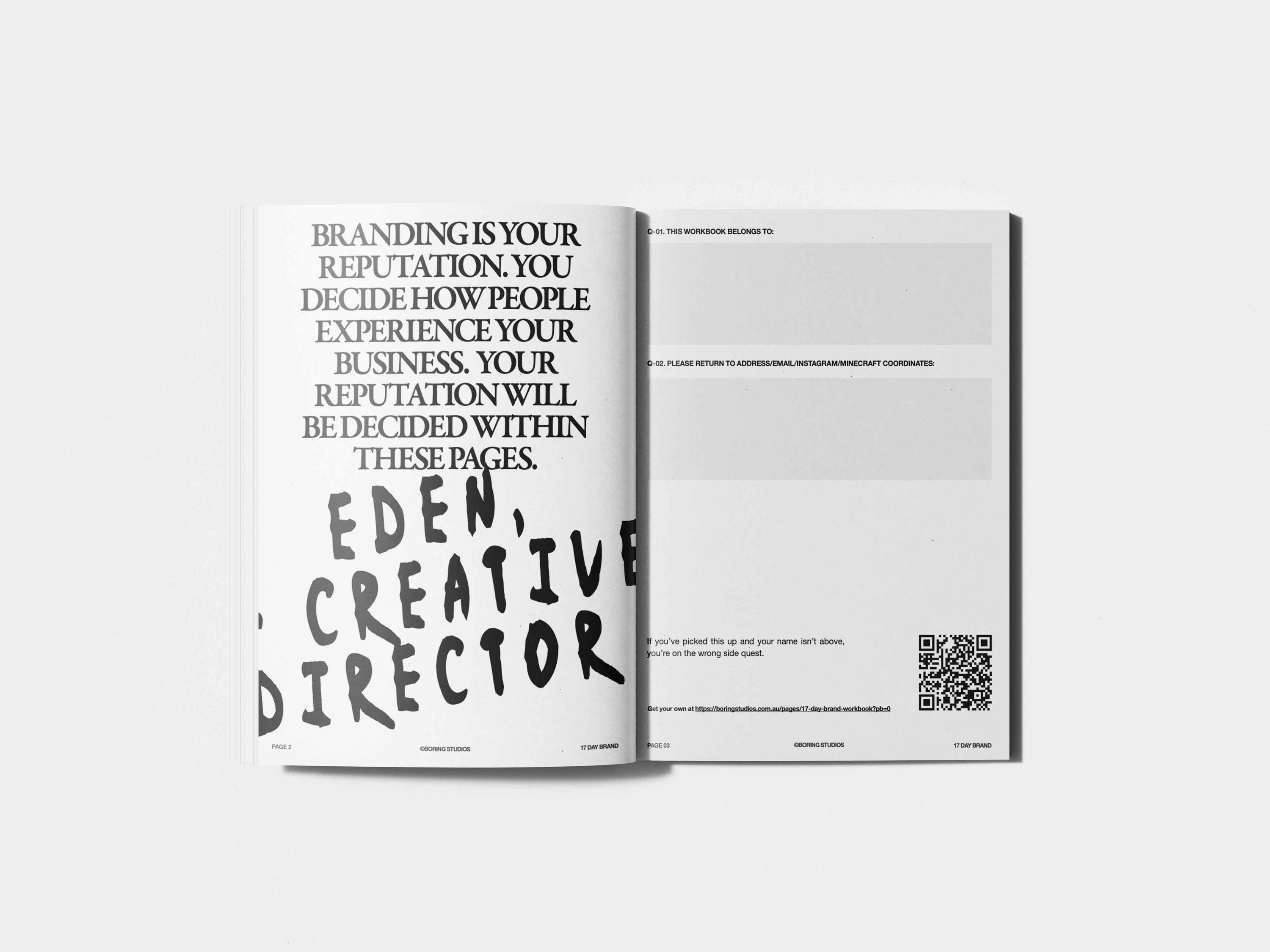 Brand in 17 workbook: Actionable steps for creatives and freelancers who want to build a business that generates flowing clients.