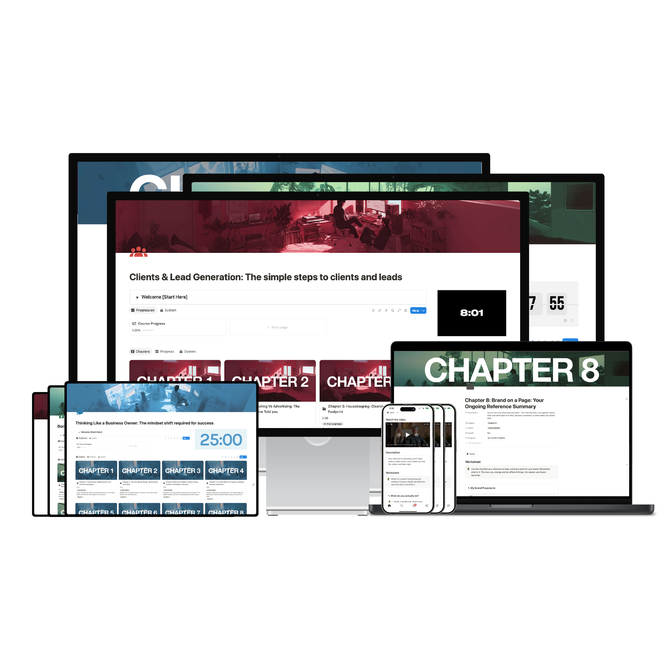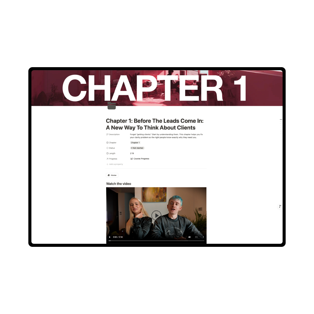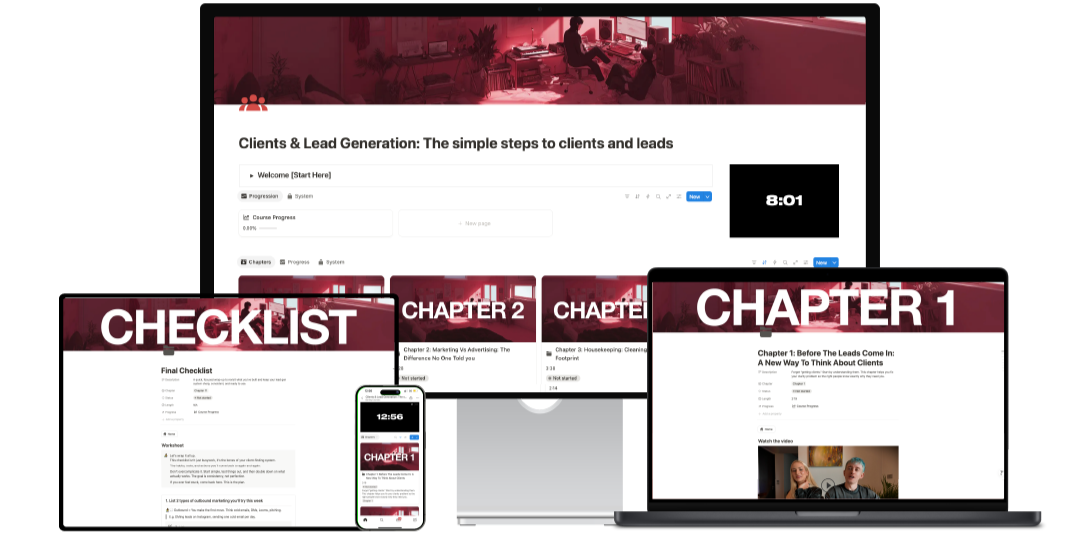 10 bite-sized chapters covering lead generation, marketing, organic content, and client systems. You’ll also get a final checklist to keep your process sharp.