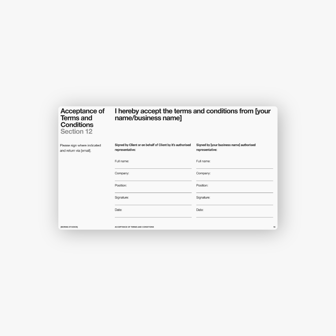 • Clear breakdown of your services, process and pricing.