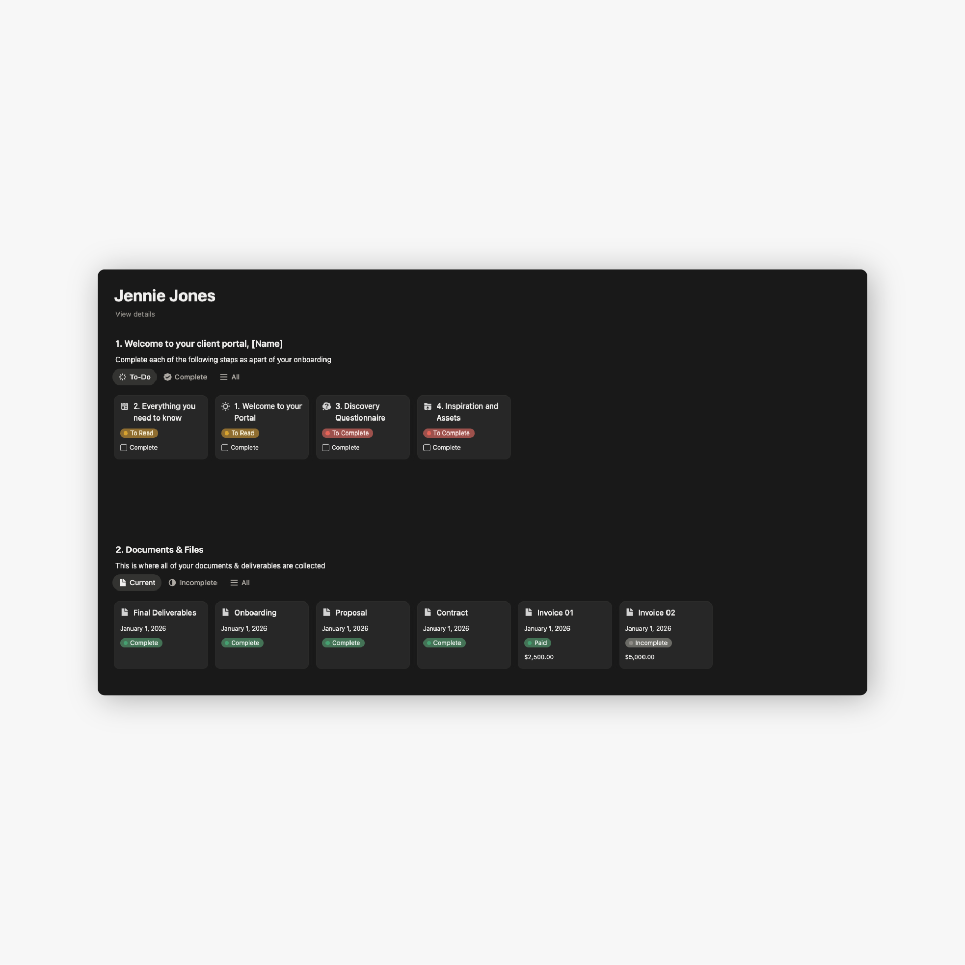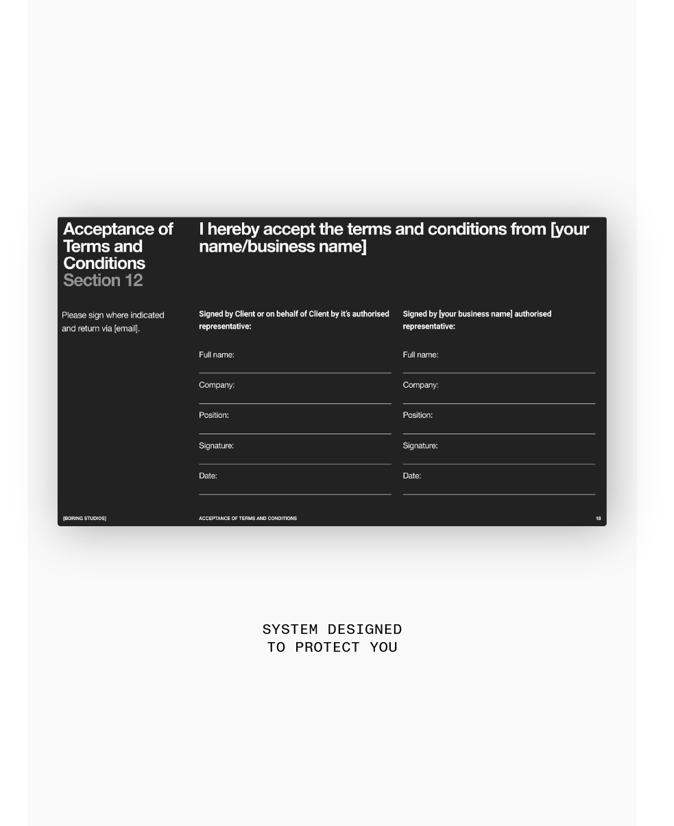 Your professional output is 80% of why the client is hiring you. Clear processes, documentation and systems make you 10x more hireable than the creative without them. Clients want a clear and seamless partnership, so give them the professional service that they paid for.