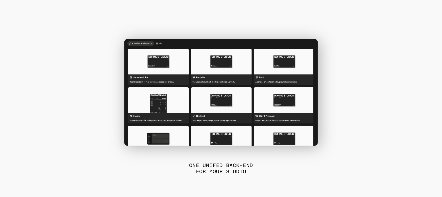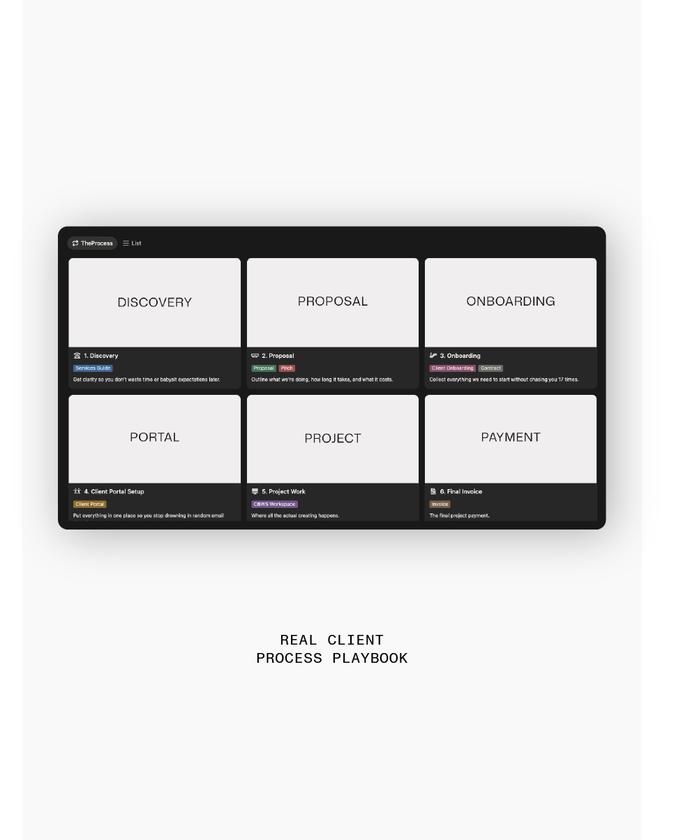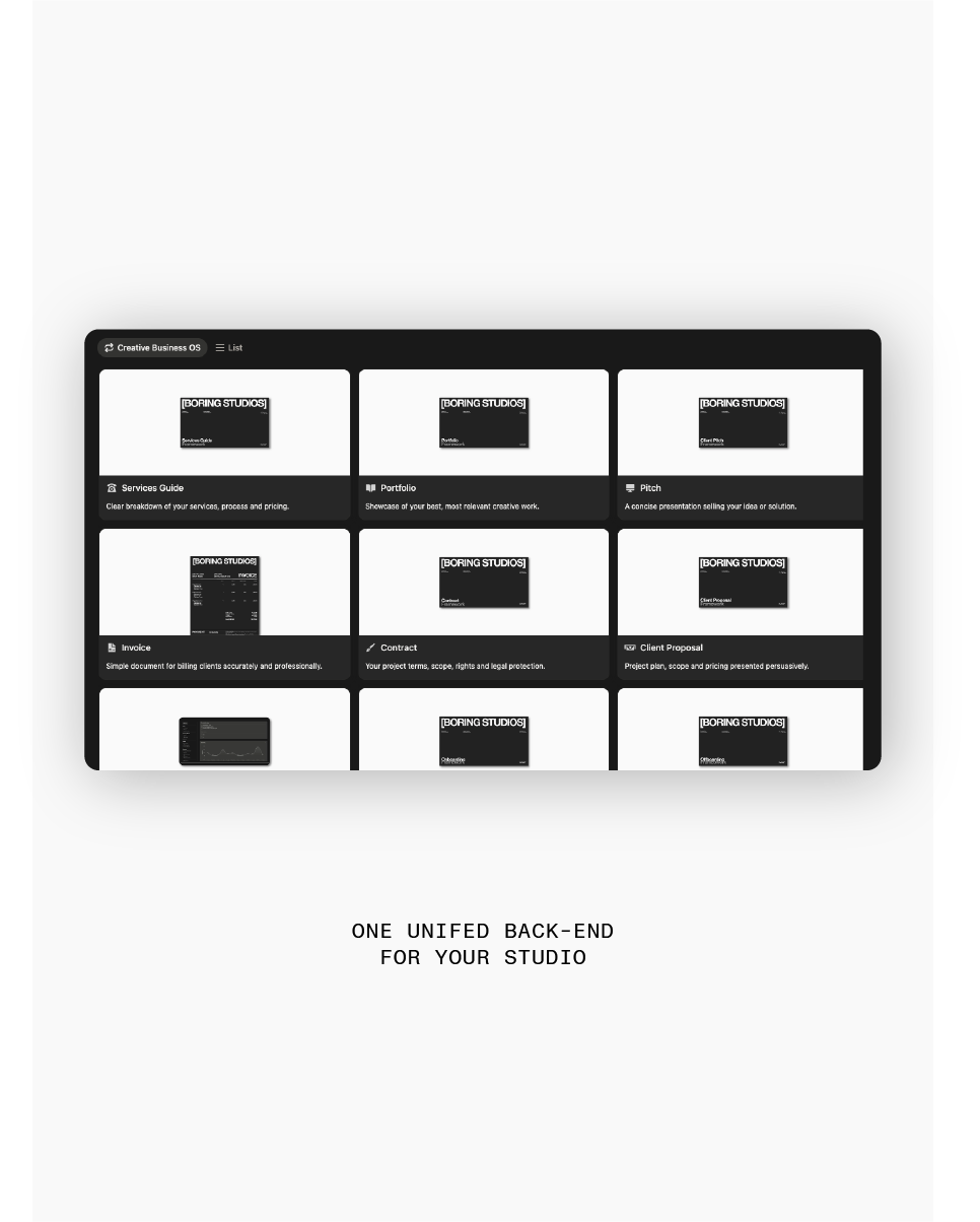 Clients leaving you on read and documents making your rates look like a joke? CBOS fixes that with the back-end pre-built workspace and external done-for-you frameworks designed to scale your creative business whether you're a studio or solo founder.